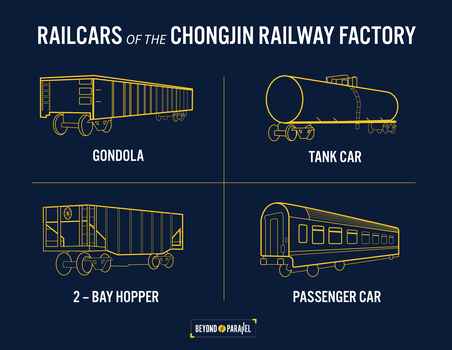 Commercial satellite imagery indicates the primary type of railcars manufactured and serviced at the factory are gondolas and hoppers used primarily to haul mineral ore and coal from mines to heavy industries and powerplants in the province, especially the Songjin Iron and Steel Complex, Sonbong Thermal Powerplant, Kimchaek Iron and Steel Complex, and Chongjin Structural Steel Works. In turn, the Kimchaek Iron and Steel Complex and Chongjin Structural Steel Works provide the finished and semi-finished products to the Chongjin Railway Factory for railcar manufacture and repair.
