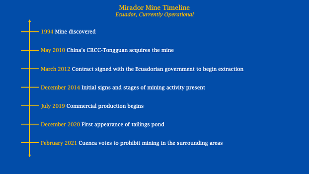Source(s): Reuters, Strife with indigenous groups could derail Ecuador's drive to be a mining power, Mongabay, Consulta popular en Cuenca: ¿una victoria contra la minería o el inicio de otra batalla legal?,