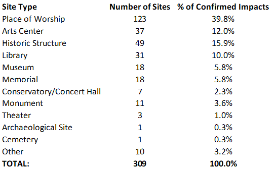 Confirmed 309 (Total) Impacts to Cultural Heritage Sites in Ukraine