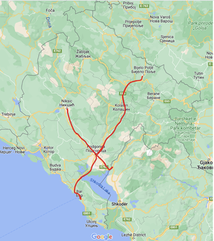 There are three main rails, the Belgrade-Bar railway, the Nikšić-Podgorica railway, and the Podgorica-Shkodër, throughout Montenegro. As Figure 5 illustrates, they connect through the capital, Podgorica. These are single-rail, multi-purpose lines, transporting passengers and cargo along the same routes.