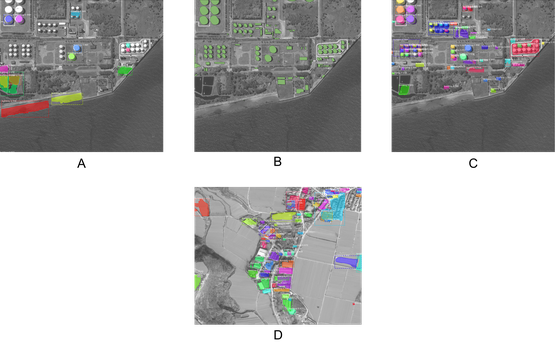 - A MR-CNN is trained to measure the total area covered by structures using building location data from Shanghai (N=4,582 images) and fine-tuned with 182 high-resolution (ground sample distance ~0.5 m; a total of 545 million building pixels and 6.62 billion non-building) satellite images at known factories, power stations, and ports in China