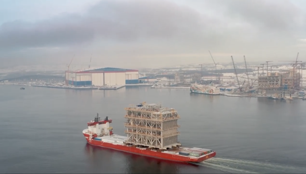 Netherlands-based company Red Box Energy Services delivers module aboard the heavy-lift, ice-breaker vessel Audax, via the Northern Sea Route.Source(s): Novatek Facebook Page,