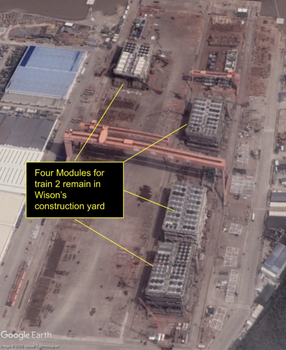 - Trains 1 and 2 are the same design and the Chinese fabricators are building the same modules for both, so the order of shipments is likely to be the same.