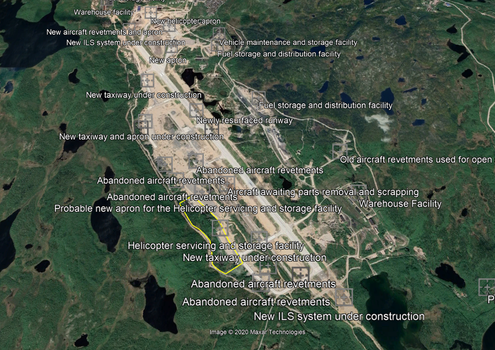 More recently, a September 4, 2019 satellite image, shows that while the air base had once again become operational, the modernization project was not complete as much of the work on some infrastructure (e.g., completion of taxiways and aprons) remained to be completed. Among the indications that the base had become operational were: