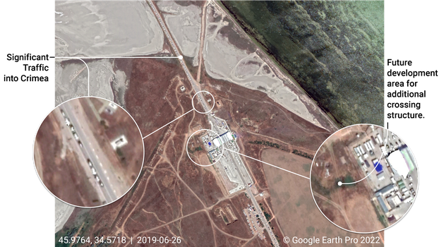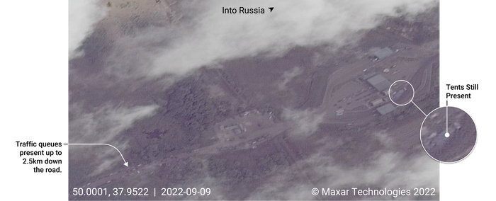 In contrast, imagery of purported filtration sites at the Logachevka border checkpoint in Belgorod Oblast and the three border crossing stations in Crimea have not shown similar reductions in activity. Rather, as of September 2022, tents remained intact at Logachevka and new infrastructure expansions appeared at the Crimean checkpoints. Moscow likely focused and reallocated resources to filtration sites where they expected an increasing civilian flux from the next stages of the conflict.
