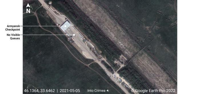 We continued our pursuit to identify additional unreported filtration sites in other Russian-controlled territories. Through our analysis of available imagery and corroborating open-source reports, we identified three new possible filtration sites at the Armyansk, Perekop, and Peredmistne border crossing checkpoints between Ukraine and Crimea.