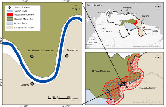 The areas of San Martín de Turumbán, Cañamú, and Eterimbán are a focal point in the connection between gold mining and mercury transportation. If these trends continue, both Guyana and Venezuela will face growing insecurity and adverse socio-environmental repercussions.