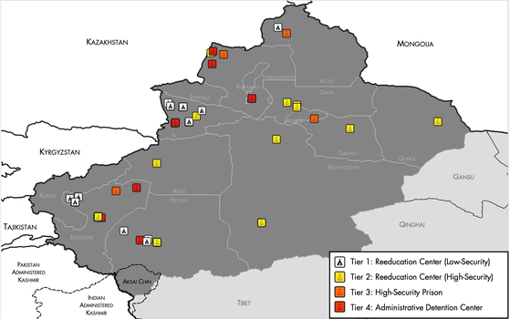 Figure Two below maps the location of these facilities across Xinjiang, broken down by their function within the broader Xinjiang detention system. With some exceptions, the majority of these facilities are concentrated in both northwest Xinjiang, along the border with Kazakhstan, and in southern Xinjiang's Hotan and Kashgar prefectures.