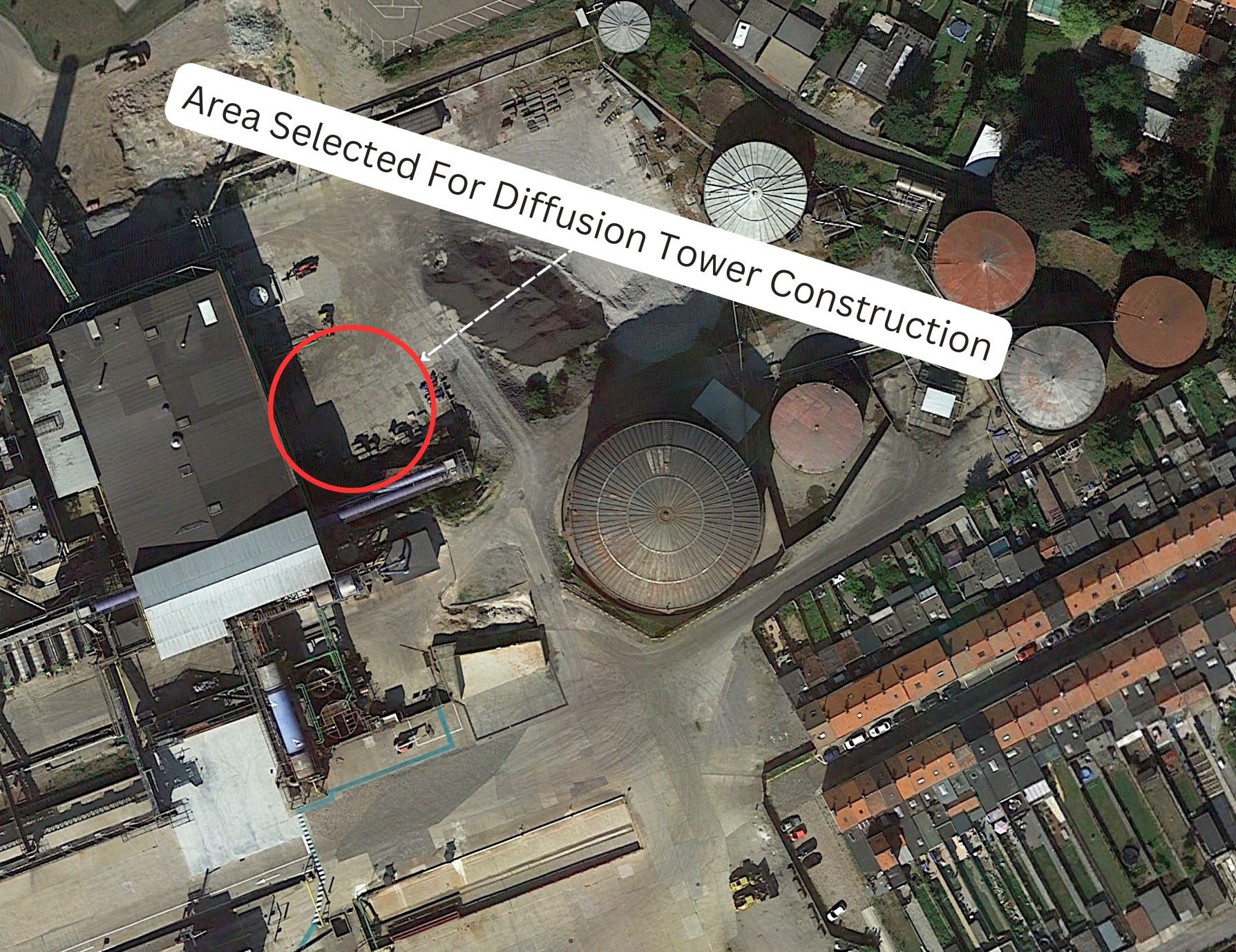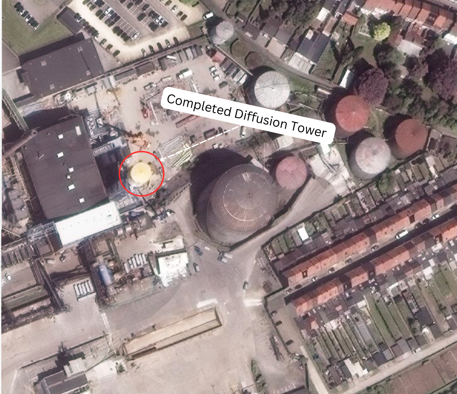 In September 2019, the original factory had room for further refinery expansion and the future site of the diffusion tower can be seen (Figure 1).