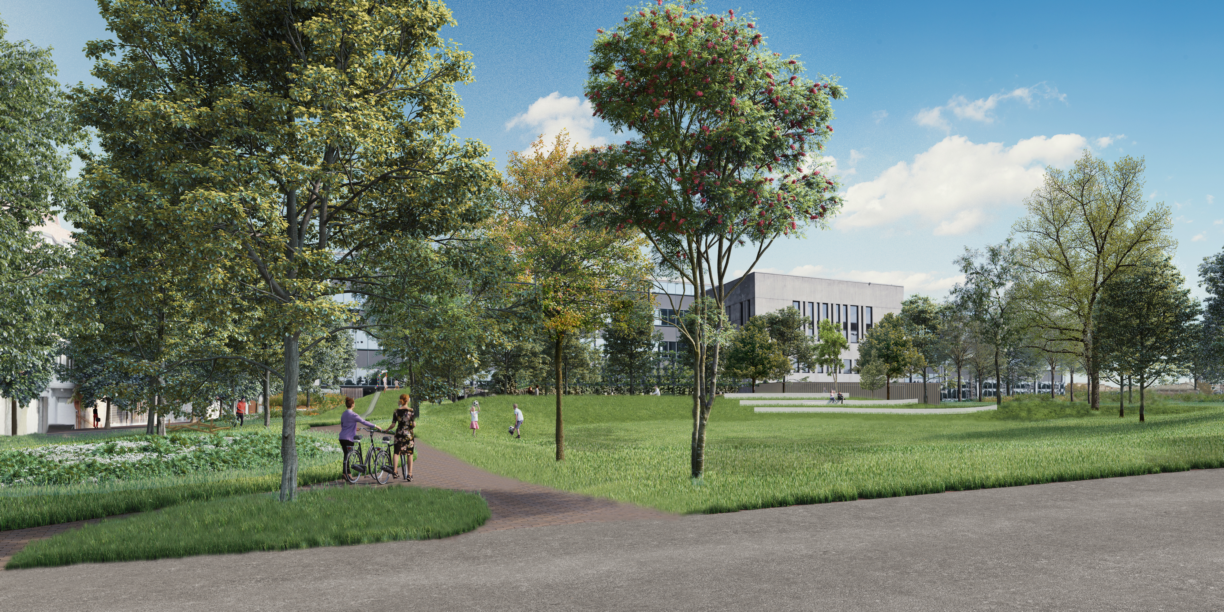 The images above (Figure 42) on the left and right are official project renderings provided by the city of Kortrijk and illustrate what these green transformation projects will look like when completed.