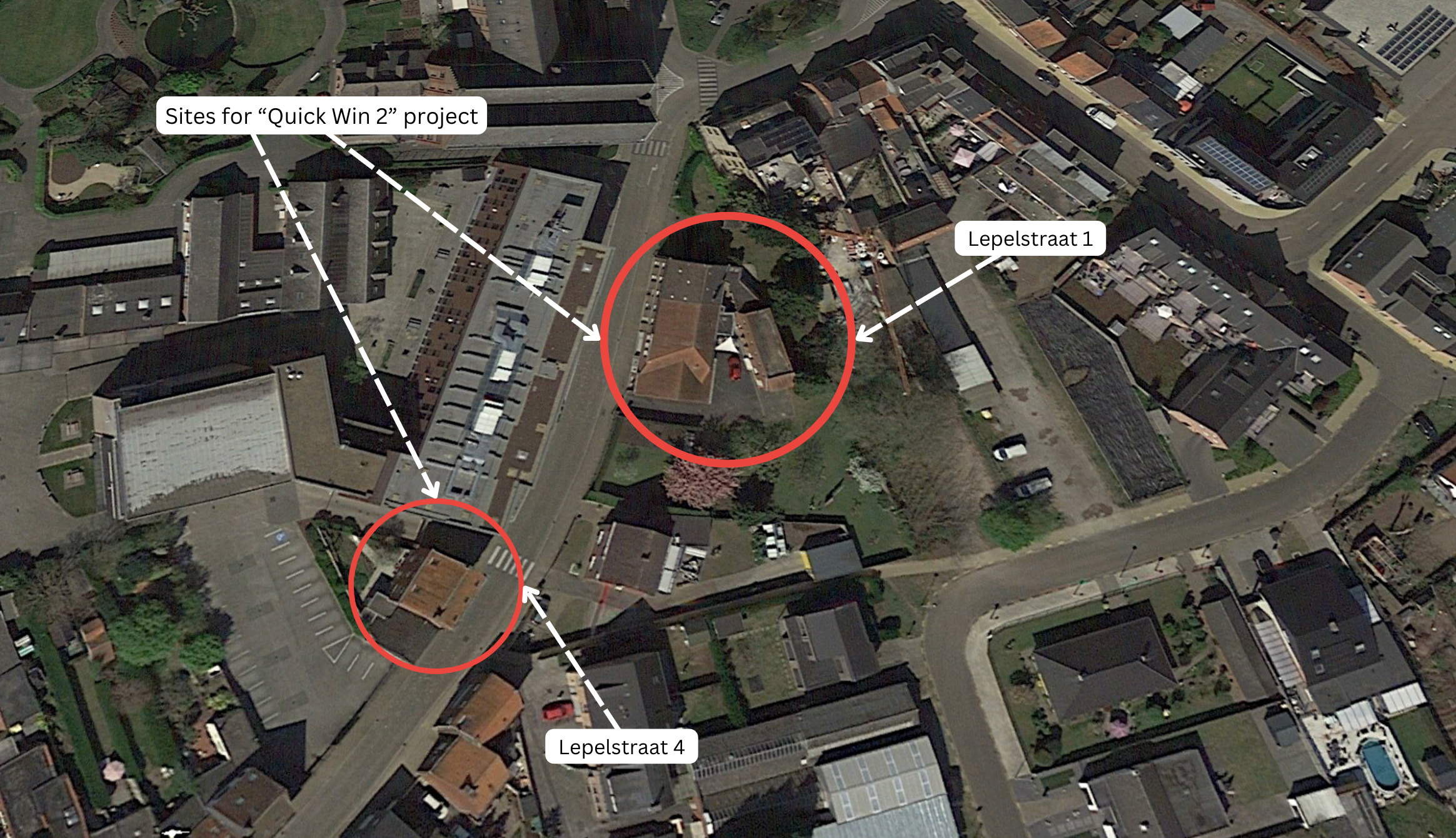 The final project involves the transformation of streets in the city of Vorselaar into green streets. This project is listed on the Blue Deal project page and is further associated with the larger Green-Blue Interconnection project - the Blue Deal logo can be seen on the Green-Blue Interconnection project page. Green streets are water-permeable modifications often by narrowing and green beautification to traditional streets that channel water into underground storage or away to reservoirs for later use. According to the Vorselaar plan, the city will reform all of its 104 streets by 2046, but it will start with 3 "quick win" street projects started in 2022 with a 2.5-year completion schedule. These "quick win" projects are designed to improve rainwater infiltration, storage, and retention capacity. The project that has been selected for further analysis is the"Quick Win 2" project, which focuses on creating green streets to connect the urban center of Vorselaar to the countryside with a dike track running along these paths for water infiltration. Specifically, the street Lepelstraat in the city of Vorselaar will have a pedestrian path and more narrow and "slow roads" with trees to soften the urban space and improve water infiltration. To achieve this new green path while accommodating vehicle traffic, the municipality plans to purchase and demolish 4 Lepelstraat (a house). Furthermore, this quick-win project also wants to pave the private garden behind house 1 Lepelstraat and turn it into a public park effectively creating an interconnected green space on this street.