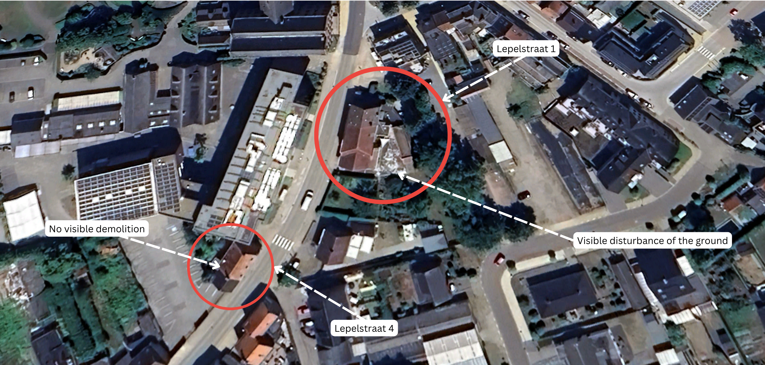 Finally, in July 2023 (Figure 47), the image for the area showed no demolition of Lepelstraat 4 but visual evidence of ground disturbance in the garden of Lepelstraat 1 indicating the possible start of the "quick win 2" project by mid-2023.