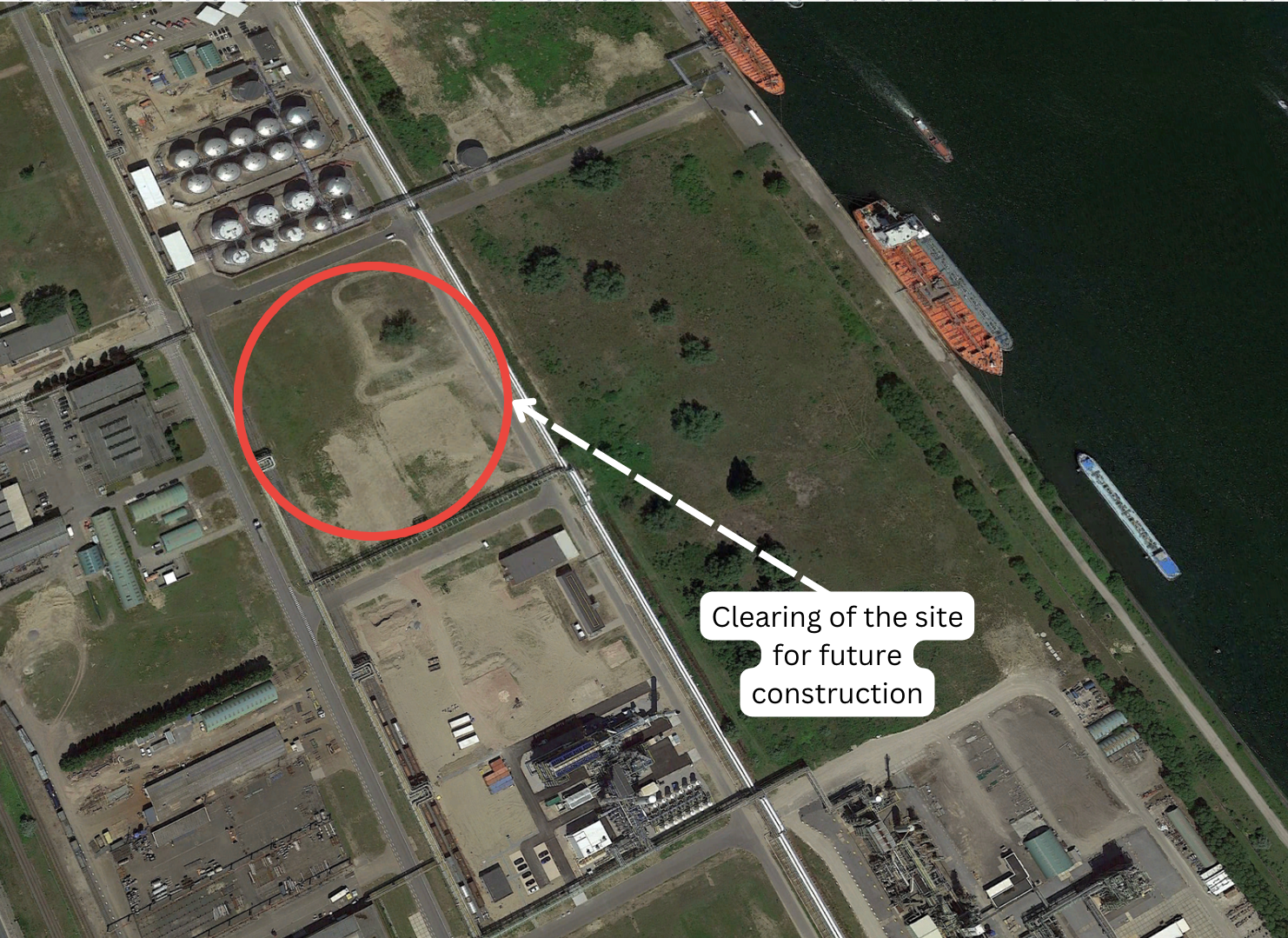 An AVAIO Capital news release stated that the new facility will convert water from the B1 Channel Dock in Antwerp. Below, the official map of the Port of Antwerp and commercial satellite imagery (Figure 19) confirmed this claim and corroborated the location of the water facility project on the Covestro campus.