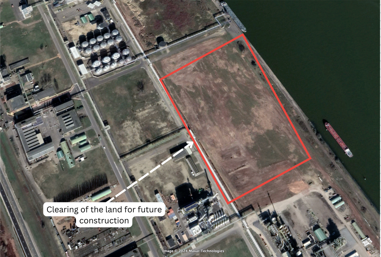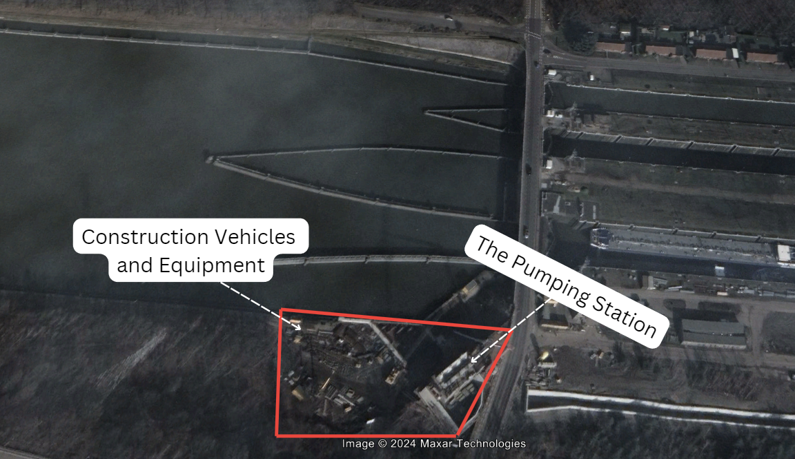 In January 2024, the project progressed with new construction south of the originally identified facility construction, which could eventually house the pumps and filters necessary to purify the dock water. (Figure 24). This construction conforms to the WaterWorld article's statement that the project was planned for completion in late 2024.
