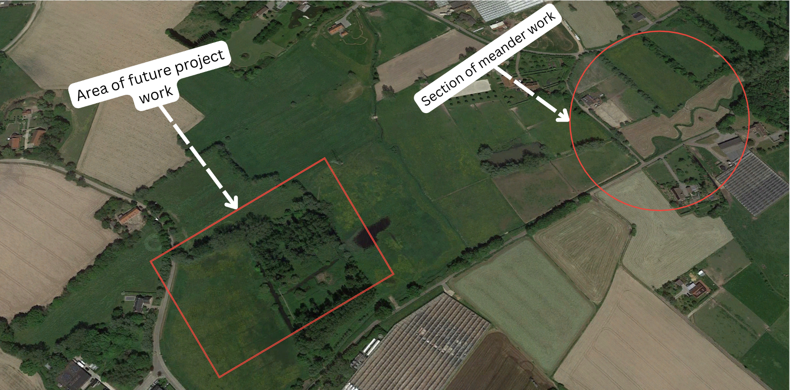 By March 2022 (Figure 30), work at the site had started with the restoration of a small watercourse narrow trench.