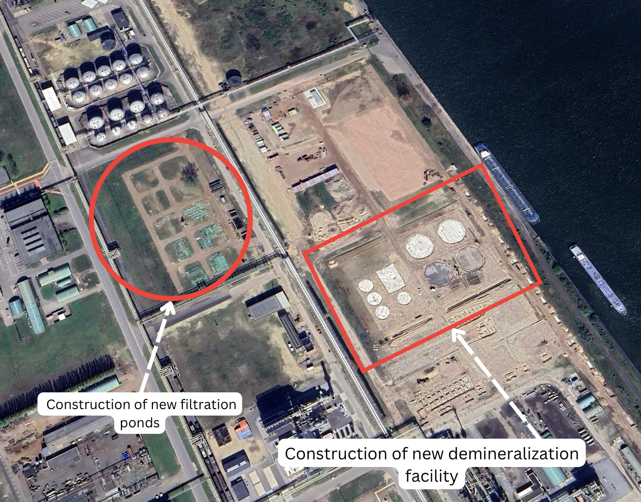 Imagery from April 2020 shows the locations for the new demineralization facilities (Figure 20).