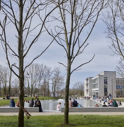 In East Flanders, at the University of Ghent, the school is tackling water management on the Ardoyen campus. The circular water use project at the Tech Lane Science Park at the University of Ghent Ardoyen is a project affiliated with the Blue Deal through its listing on the official project website and its greater affiliation with the larger project group "drought testing grounds." This larger project group is a coalition of Blue Deal efforts that increase rainwater collection and circulation to improve water scarcity conditions during drought. Specifically, the campus is taking a multi-phase approach for this initiative, ranging from upgrading underground pipelines to the "centerpiece" project, which is a central water feature on the campus that will be connected to the greater underground infiltration system to improve the circular water system. The University website states that the phase of the project that concerns itself with the construction of this water feature had a timeline of December 2022 to Fall 2023.