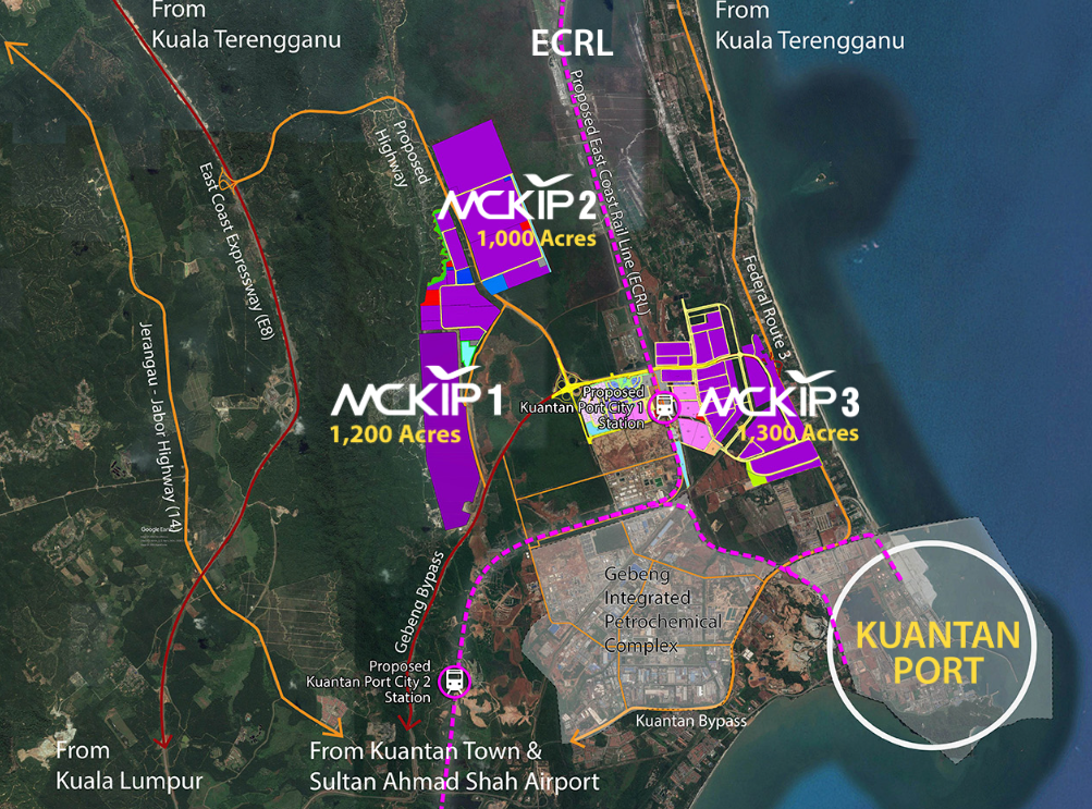 This section will describe the Malaysia-China Kuantan Industrial Park (MCKIP), a progress marker to compare the KPSEZ industrial park and housing section with the development of a similar BRI-led special economic zone in southeast Asia. The MCKIP is a Chinese-Malaysian joint industrial park and deep-sea port project totaling over 3500 acres and located in Kuantan on the east coast of Pahang state, Malaysia (Figure 9).