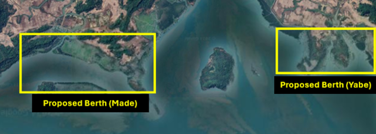 Imagery analysis from November 2018 to March 2024 shows a lack of construction or development (Figure 6). As of March 2024, no construction development of roads or bridges connecting Yabe to Made or Ramree islands was observed.