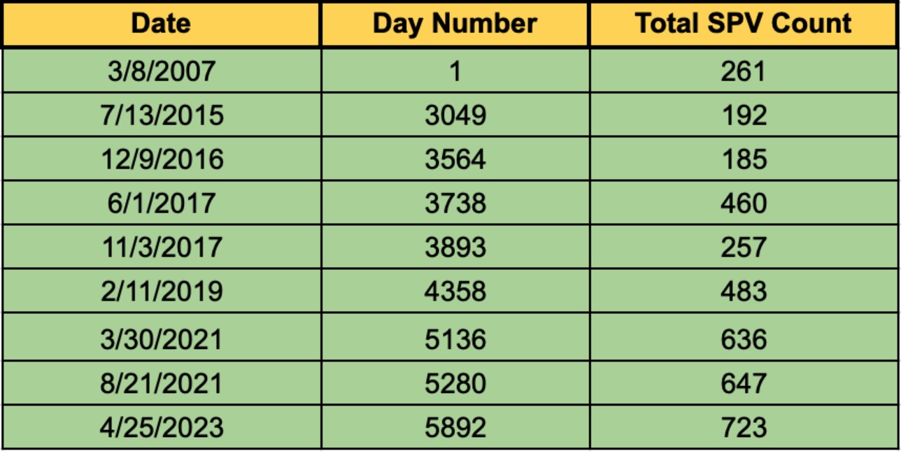 After finalizing and peer reviewing our survey days, we proceeded to record our results in a table to visualize any trends in the growth of total SPVs in Hamhung. Along with plotting the date, we decided to convert this to a total “Day Number.” This way, we could later determine the growth of SPVs per day as a metric for growth over time (see Fig. 1).