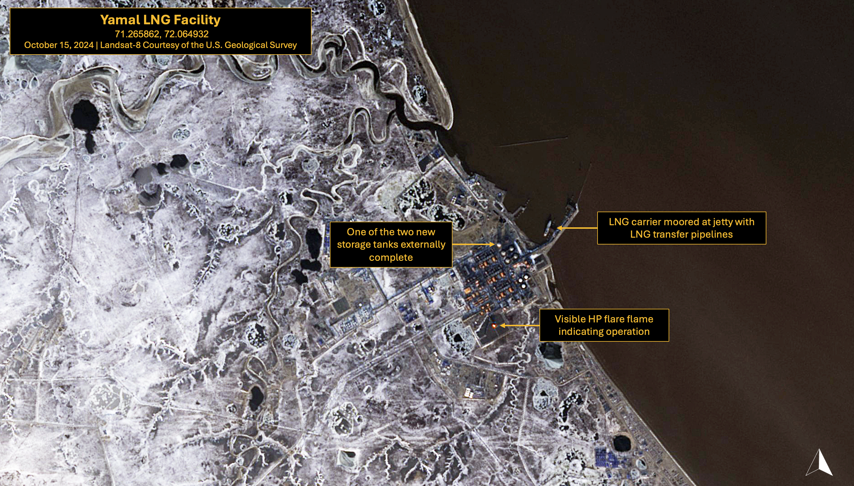 An analysis of 58 satellite images, including multispectral and synthetic aperture radar (SAR) data, from May 2023 to November 2024 show recent developments and the operational status of the Yamal LNG facility.