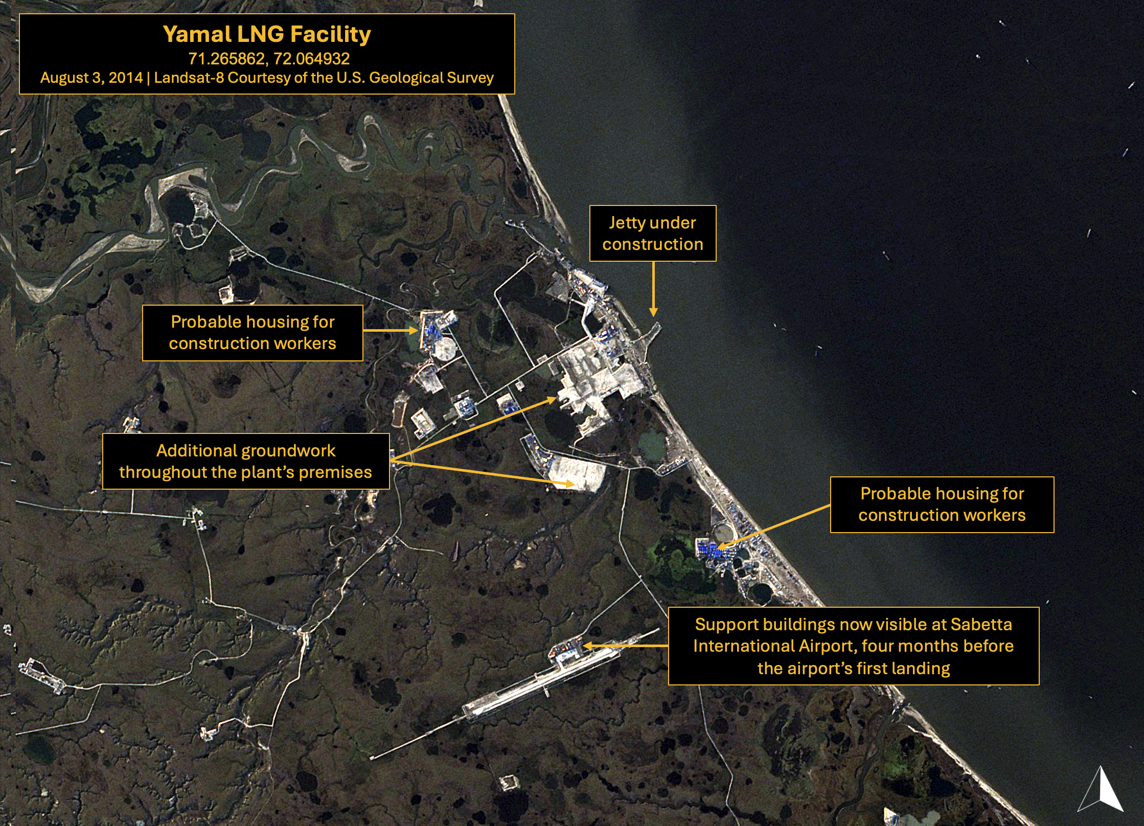 Prior to the construction of the Yamal LNG facility, Sabetta port, and the Sabetta International Airport, the area hosted minimal infrastructure for early exploration of gas fields after Russia’s interest in increasing LNG output grew in the 1990s.Vitaly Yermakov, “Arctic LNG 2: The Litmus Test for Sanctions Against Russian LNG,” OIES Energy Comment, Oxford Institute for Energy Studies, October 2024.[7]