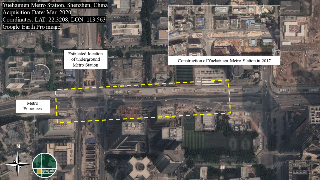 Workers living farther from their site of employment increase transportation time and costs. Commute options are not well supplemented by the park's lack of sufficient transportation infrastructure. In 2011, the residential population of Shenzhen High-Tech Industrial Park was 139,000 people and there were 300,000 people who worked in the park. Plans for the development of Shenzhen High-Tech Industrial Park were made according to a projected doubling in both populations (310,000 residents and 600,000 workers). Based on the high number of workers who live outside the park, there is a clear demand for transportation into the park. As of 2014, the government planned to construct five additional metro lines: Luobao (Line 1), Shekou (Line 2), Meilin (Line 9), Shiyan (Line 15), and Qiannan (Line 17). As of 2017, the transportation infrastructure was still insufficient, with extensive traffic issues and limited public transportation options. Figure 23 shows the construction of the Yuehaimen Metro Station, which now provides an additional stop near Shenzhen University and Shenzhen Digital Technology Park on the Meilin metro line. Figure 24 shows a map of current public transportation inside the industrial park.